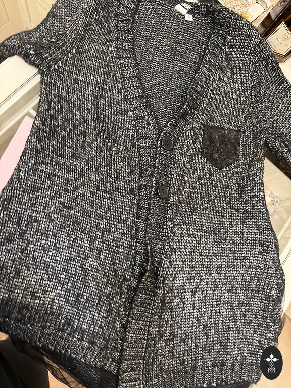 12Y (146/152) Jeycat juoda striukė su pūkuotais pomponais ir spaudėmis. Rankovių ilgis nuo pažasties 36 cm, nugaros ilgis 48 cm. Buvo dėvėta su šventinėmis suknelėmis, labai geros būklės.