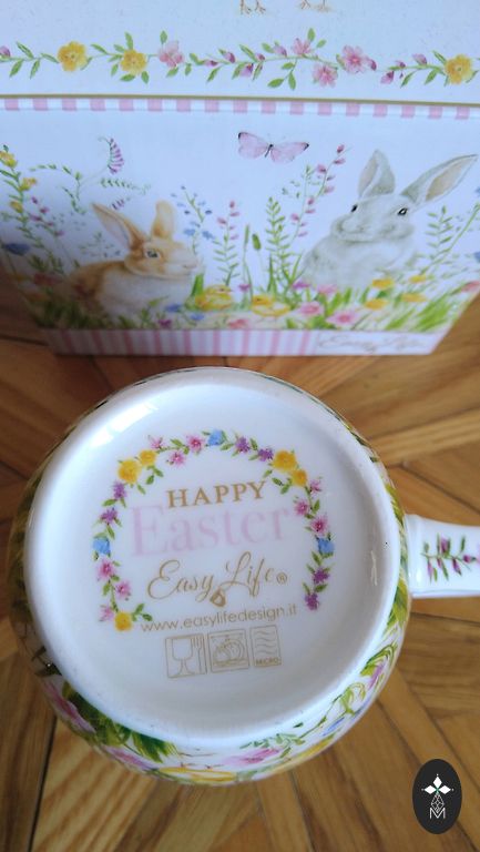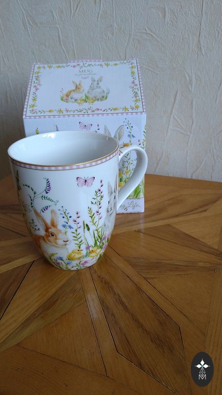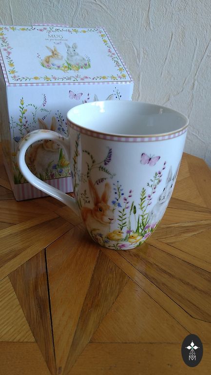 Baltos spalvos puodelis su piešiniu