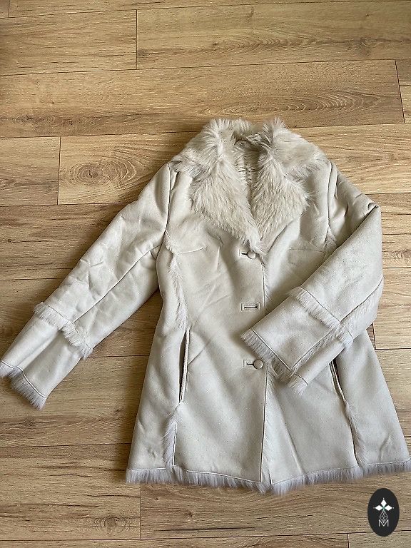 Mantli koostis: 72% vill, 8% kašmiir, pikkus 130cm, rindkere 56cm, varrukad 62cm.