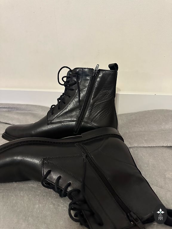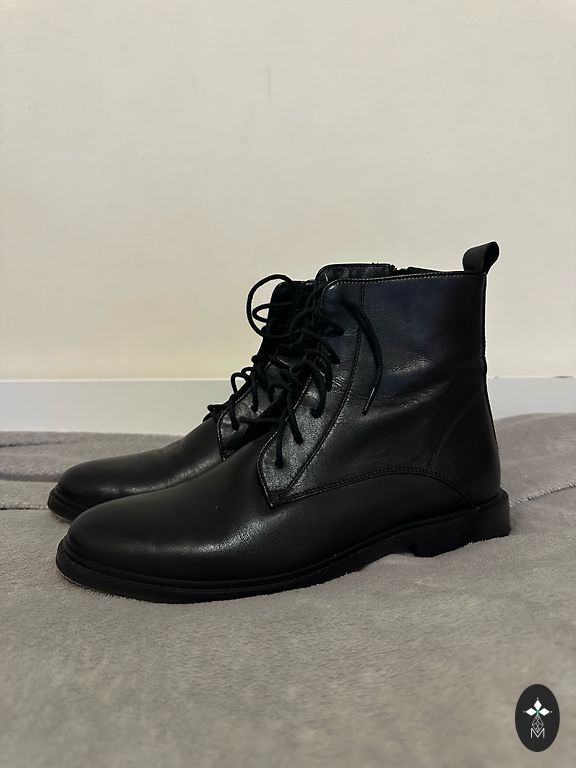 Skaisti ādas zābaciņi 41 izmērs. Skaisti izskatās uz kāju, ērti un skrienamie zābaciņi. Kļūdījos ar izmēru. Vilkti 3x. Pirkti veikalā Eiraskor. Uz viena zābaki mazs nobrāzums, bildē redzams, dzīvē nevar pamanīt. Mazs siltinājums iekšpusē.