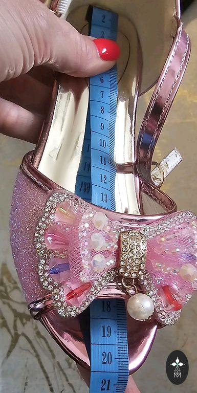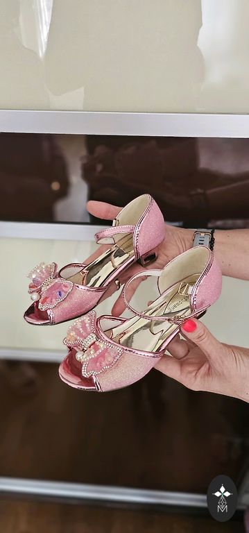 Šventinė suknelė iš tankios medžiagos su sidabriniu lureksu, medvilniniu ir tiulio pamušalu, skirta maždaug 7-8 metų mergaitei. Nugaroje paslėptas užtrauktukas. Defektų nėra. Naujos prekės būklė.