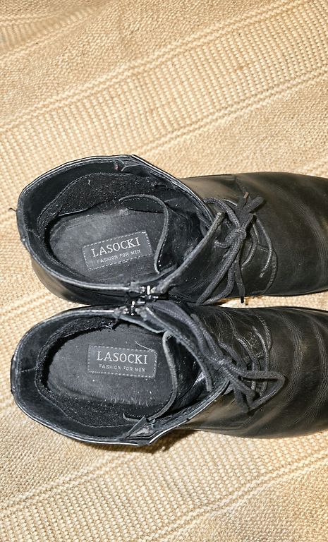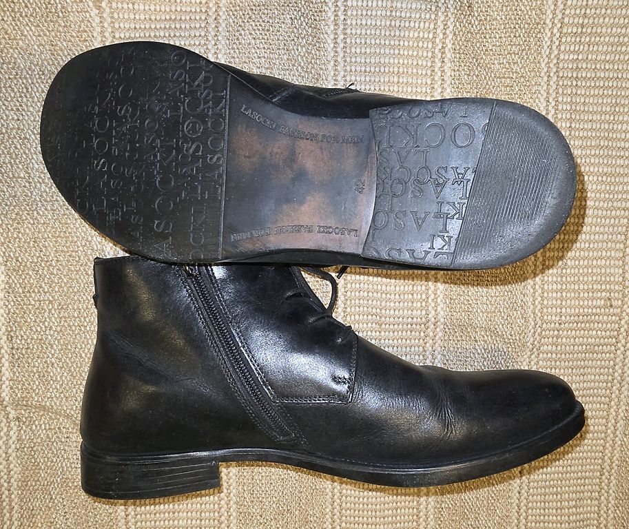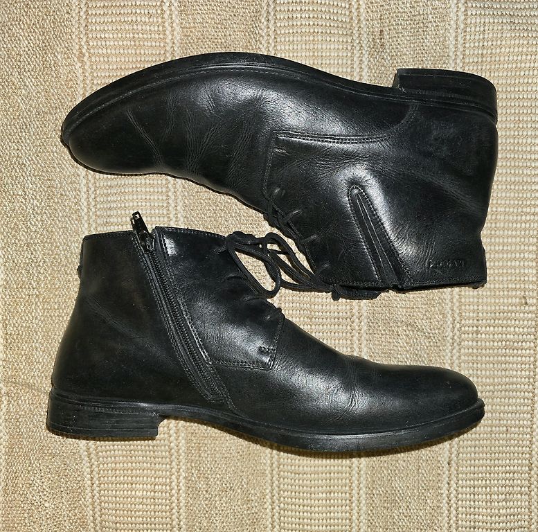 Good work shoes, leather and with metal reinforcement inside to prevent foot injury from heavy objects if dropped.