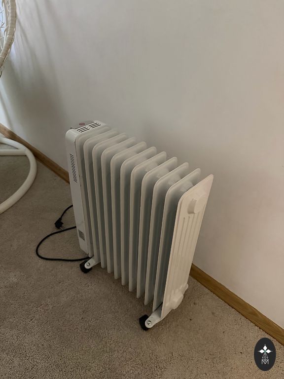 Kalorifers Komforts ar 10 sekcijām, darba stāvoklī. Atrodas centrā.