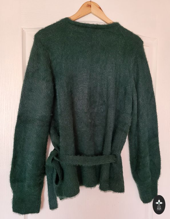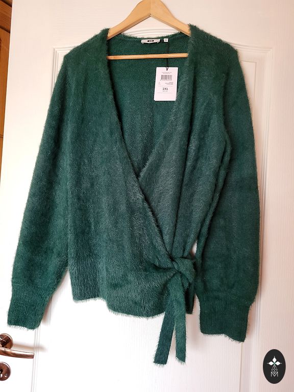Size 46, fits larger (48). Soft, elastic, pleasant knitwear. Black/grey/white.