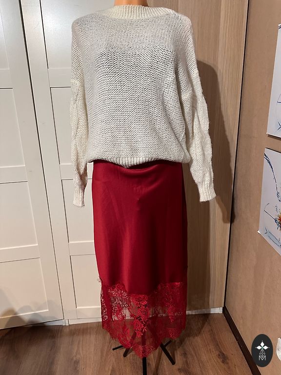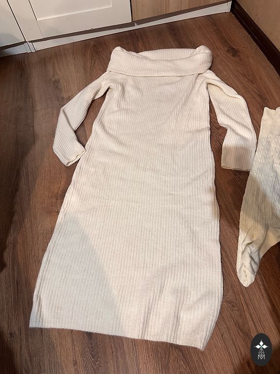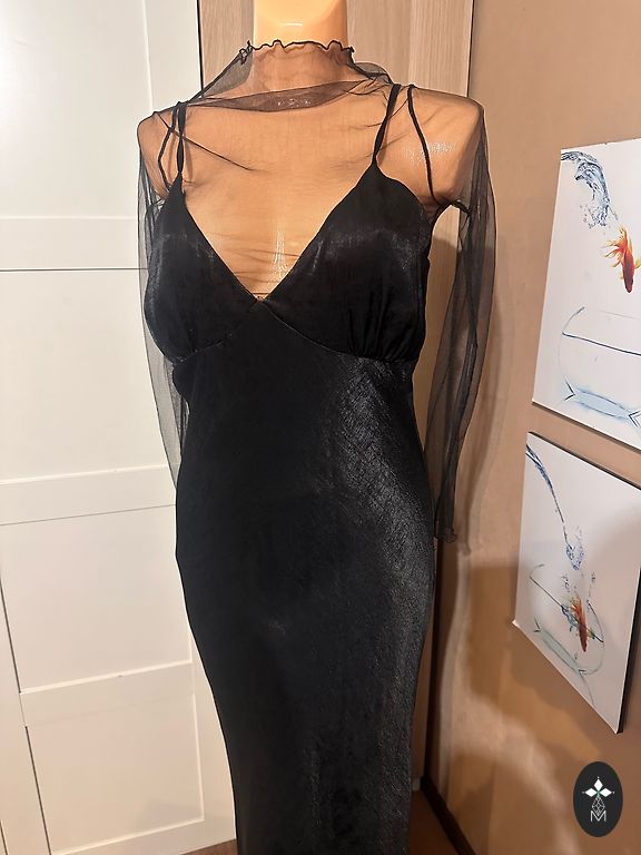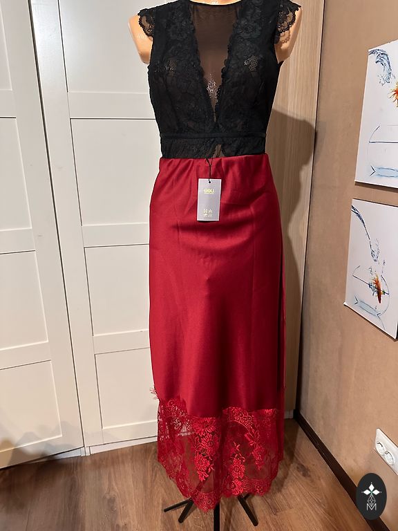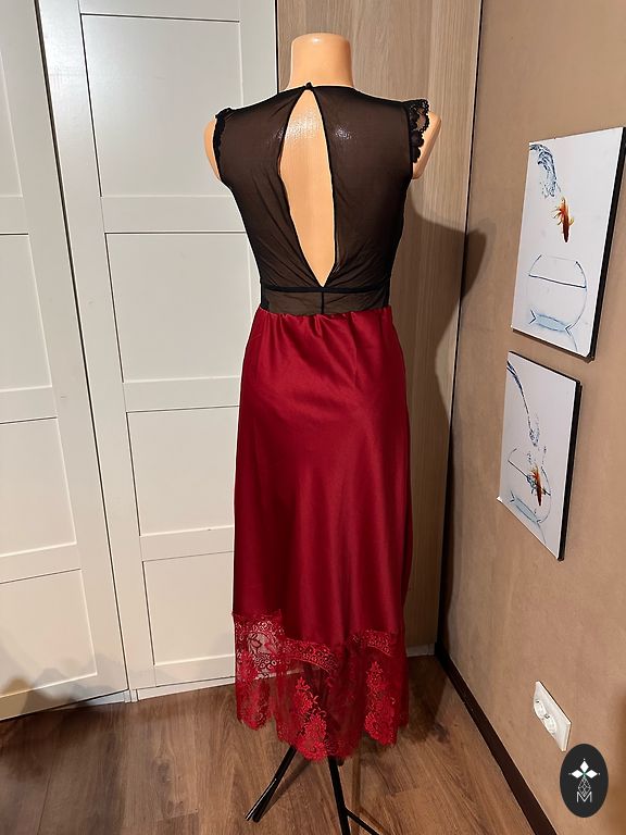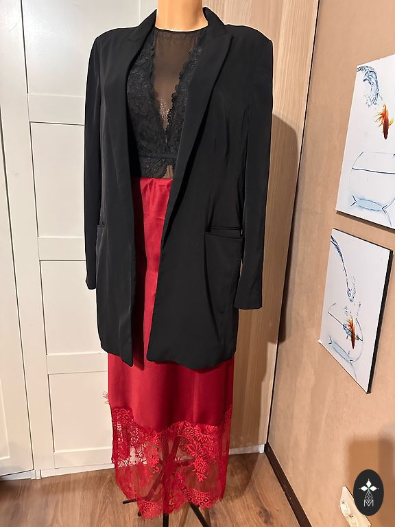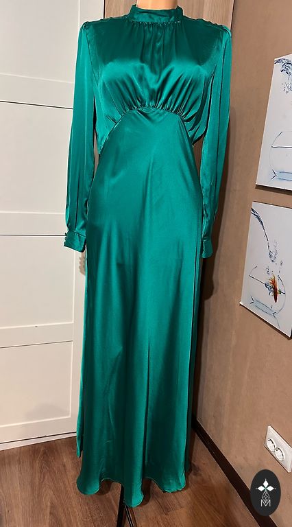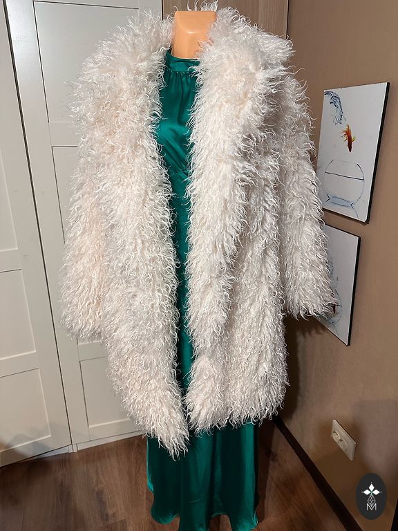 Nupirkta, bet taip ir neišpakuota, labai graži. Ilgis 130, krūtinė 50 x 2, klubai 55 x 2 netempiant.