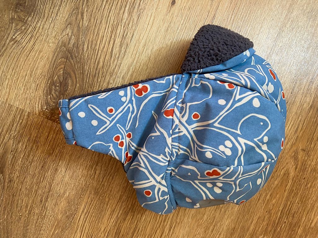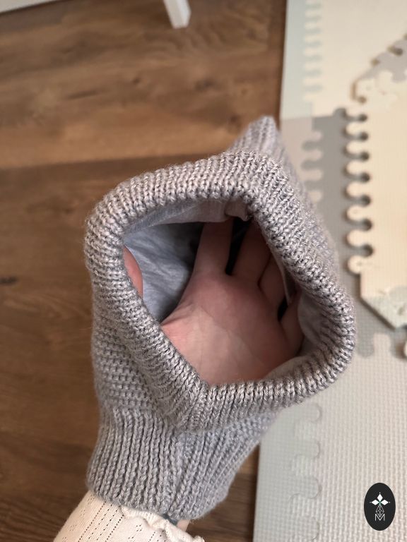 Мягкая и тёплая шапочка, хорошо закрывающая шею и ушки. Снаружи шерсть, внутри хлопок. Подходит для температуры от +5 °C до –20 °C.