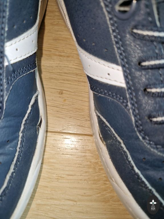 In good condition, not washed in a washing machine. One lace tip of both shoes has fallen off. Doesn't hinder wearing š, but the laces can be replaced.