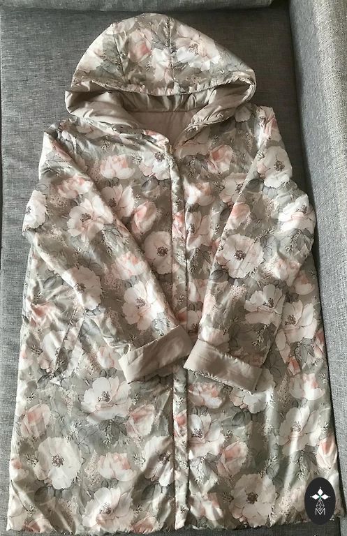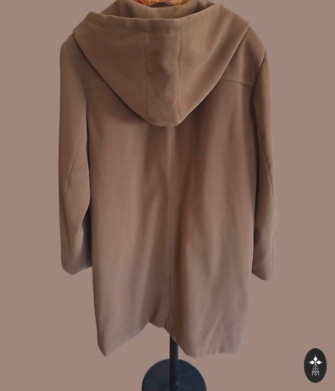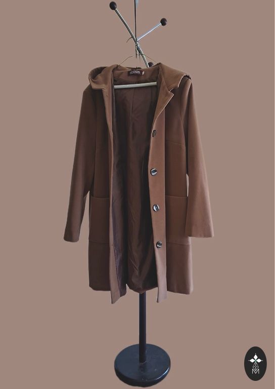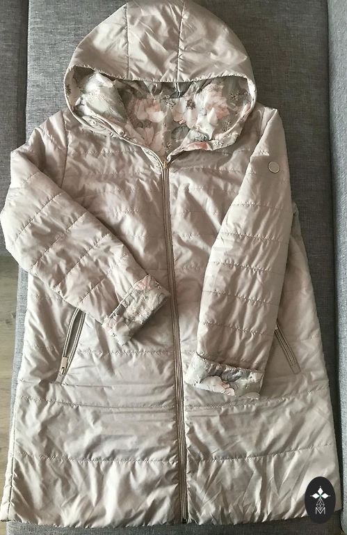 Rudas labai lengvas paltas/striukė, šiek tiek virš kelio (jei ūgis 175), spalva ruda, boro/ruda. Dydis 16 tiks stabiliai, galima dėvėti storą megztinį. Išm: krūtinė 64 cm, klubai 65 cm, ilgis 105 cm. Uždarymas užtrauktukas + magnetinės sagos. Yra kišenės ir didelis gobtuvas. Yra defektas apatinėje sagos vietoje, audinys susidėvėjęs (matoma nuotraukoje su etikete), kasdien dėvint defektas nematomas.