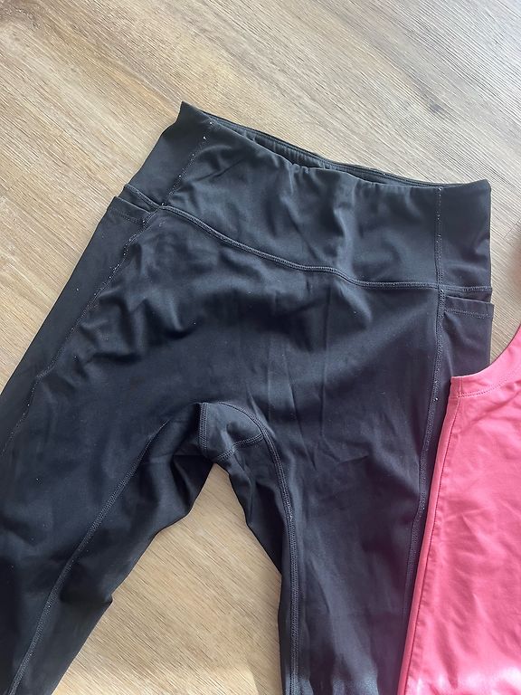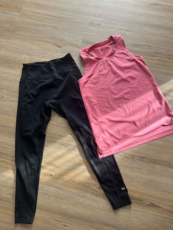 Džinsa legingi un krekliņš no Zara, raibās bikses no Lindex. Par visu kopā 6 EUR