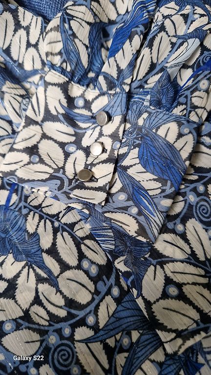 There is a defect - two buttons have lost their pearl finish, but the blouse comes with one spare button. Buy two items from my closet, and I'll cover the delivery.