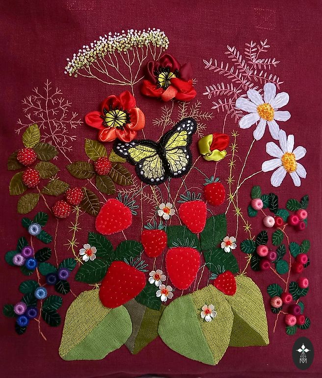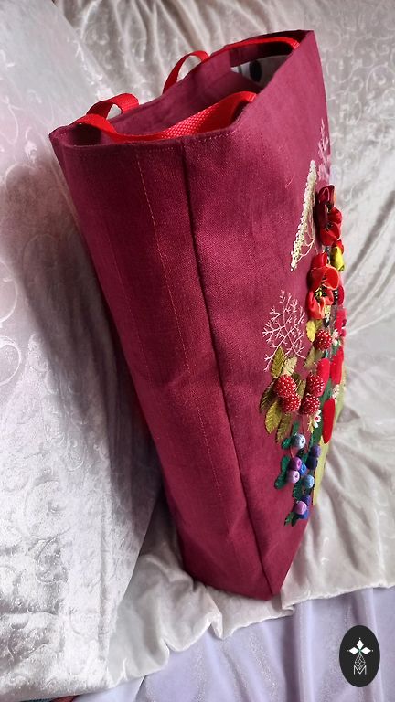 No vienas puses ar rokām izšūts samtaina auduma MAKS (mulinē diegi, dažādi audumi un pērlītes). Oderēts un stiprināts ar speciālu līmdrēbi. Labi noderēs kosmētikas uzglabāšanai vai citiem mīļiem sīkumiem. Augstums līdz aizdari 14 cm, platums 12 cm, dziļums 5 cm. Iesaiņots dāvināšanai organzas maisiņā un vēl kastītē! Papildus sūtīšanas izdevumi.