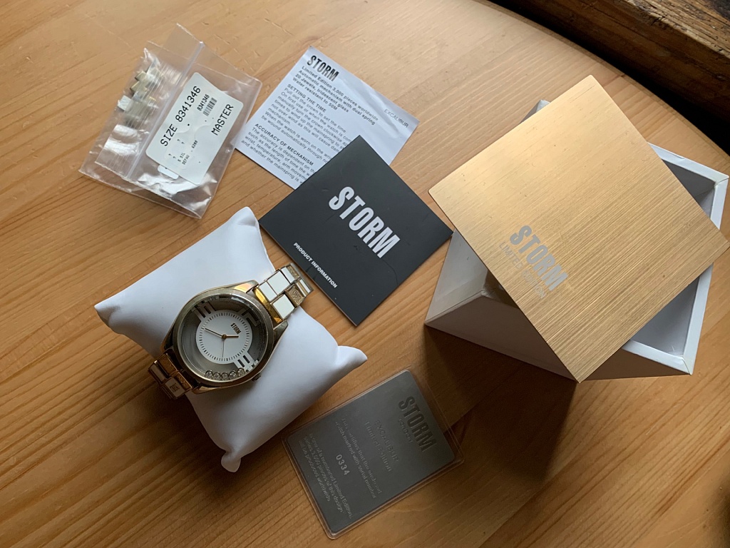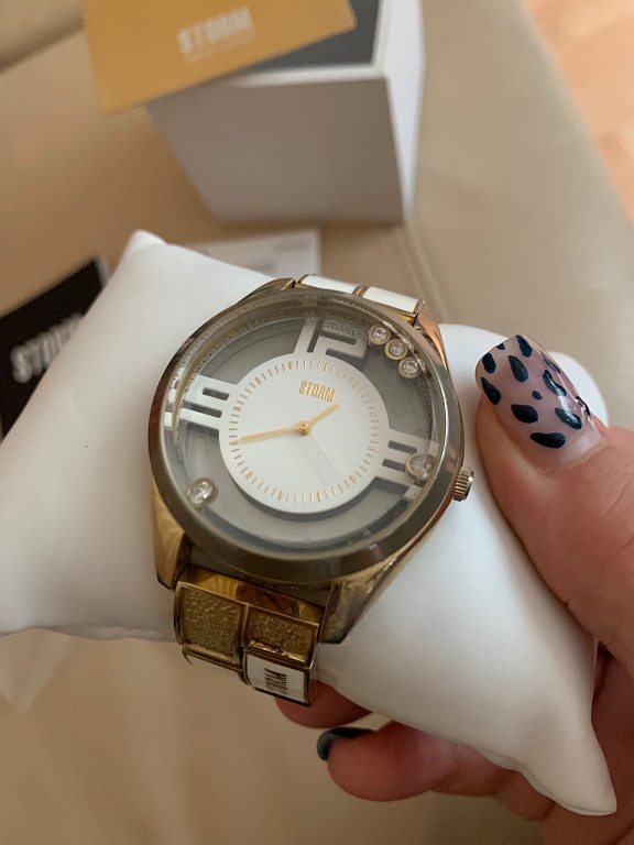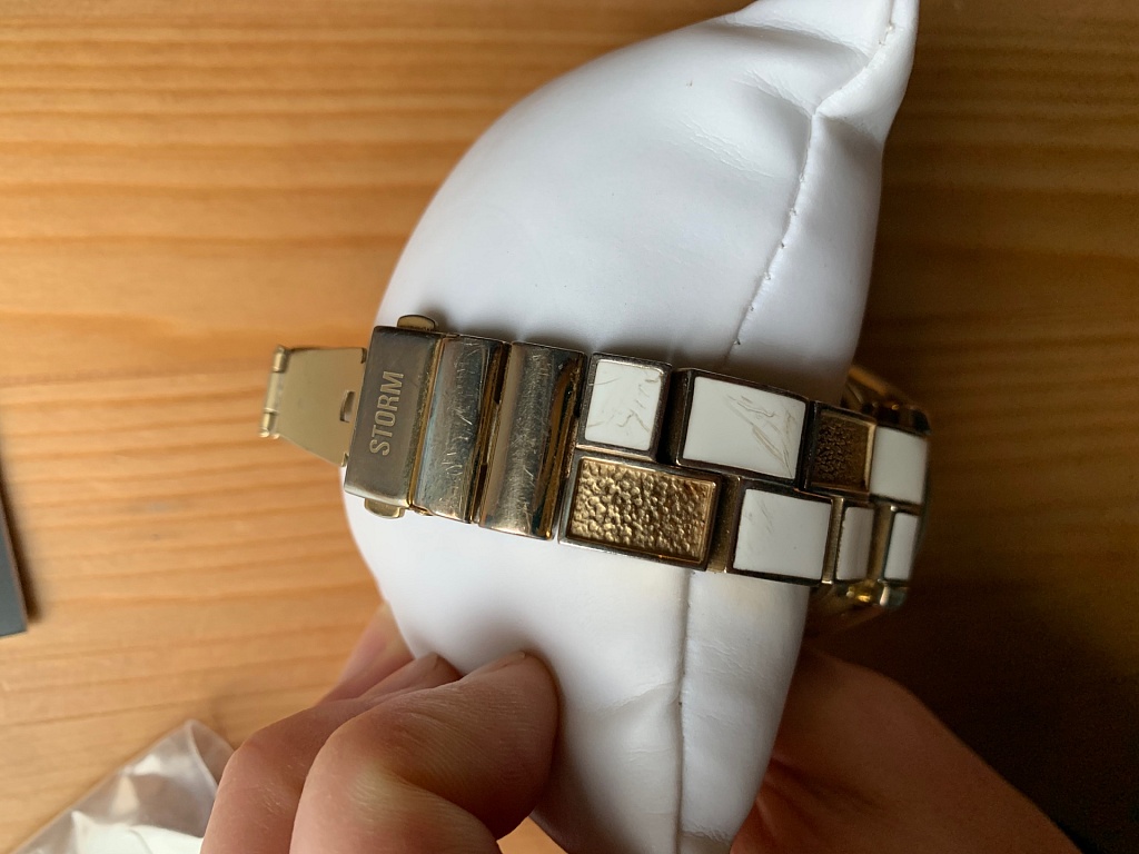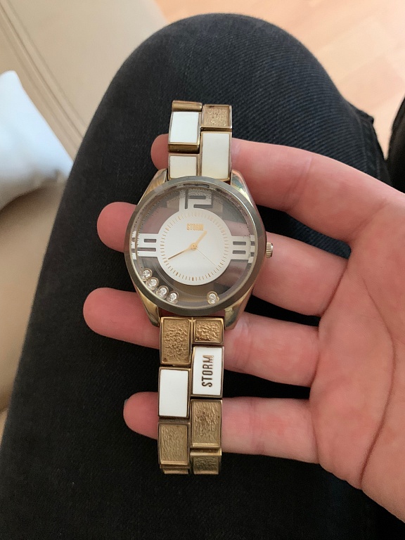 Lietots, perlamutra ciparnica, rose gold zelta tonis, janomaina baterija.