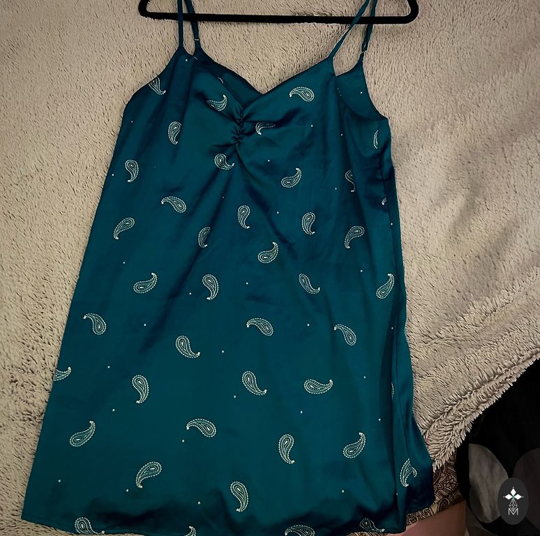 Гибкое платье с блеском и небольшим разрезом. Указан размер L, но реально подходит на M. Отправляю по прейскуранту анделе.