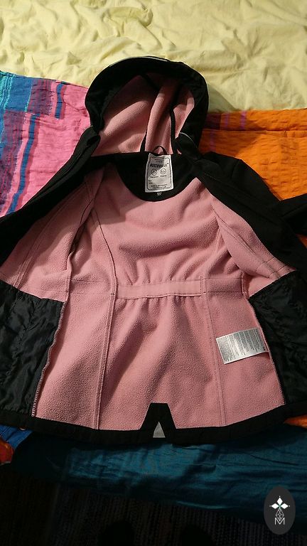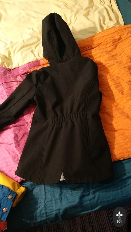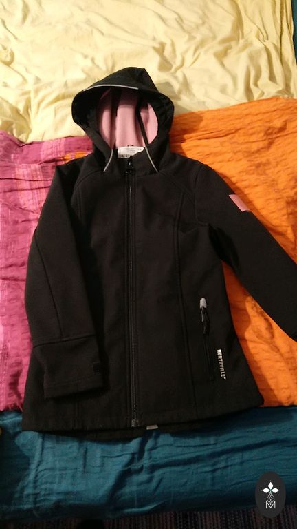 Softshell children's jacket with insulation. The jacket is designed for temperatures down to -15 degrees. Beautiful and practical design. Size 122, but as Ecoemi usually has an extra allowance. Extended back part and front part of the hood.