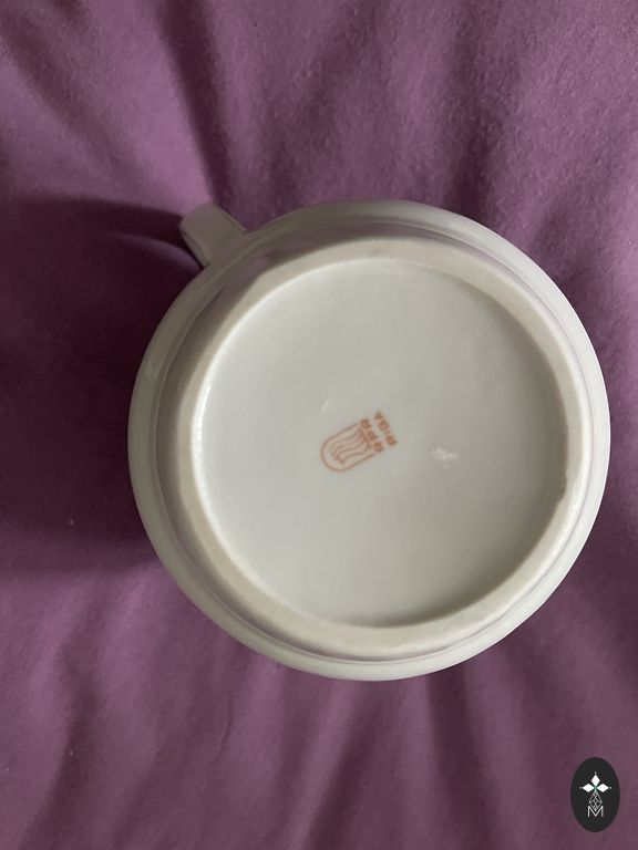 Coffee set for two TET-A-TET. One cup has a shallow grind (covered with glaze) near the base created during production - see the last photo. Otherwise, the dishes are like new. Red stamp. From one original set.