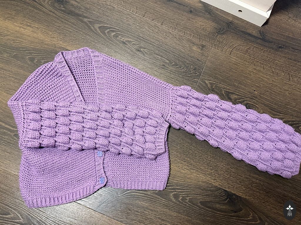 Labai šiltas megztinis gražioje alyvinėje spalvoje.