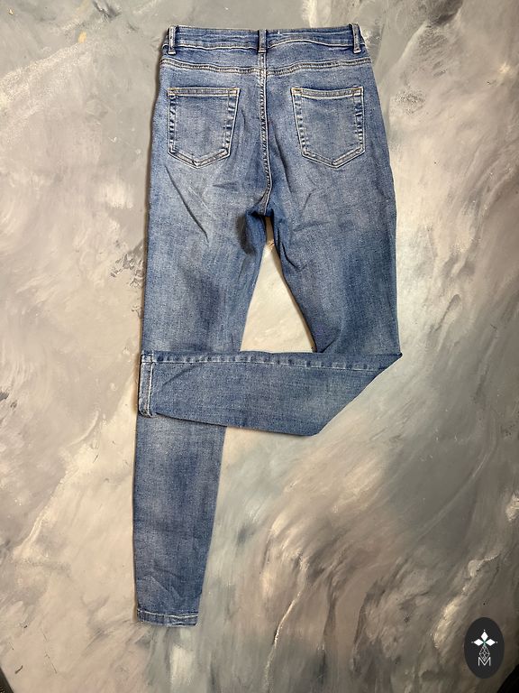 Темно-синие, эластичные... карманы только сзади...