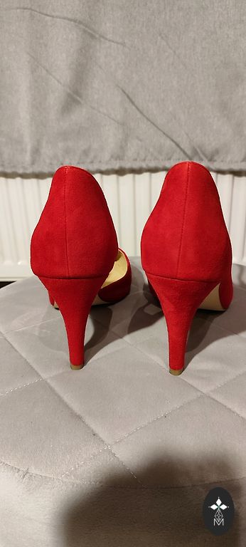 Несколько раз надеты в помещении, внутри кожа, снаружи замша, каблук 7 см. На носке производственный дефект кожаной поверхности, см. фото.