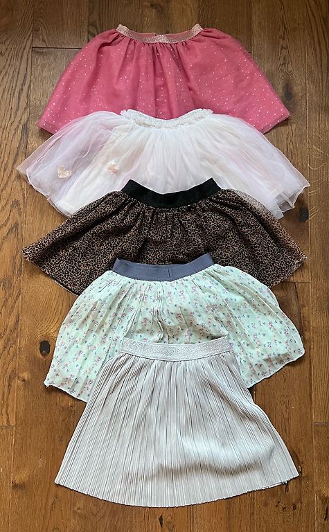 Džinsinio audinio ir velvetinės sijonai 128 dydis.