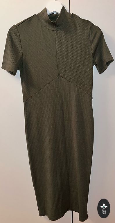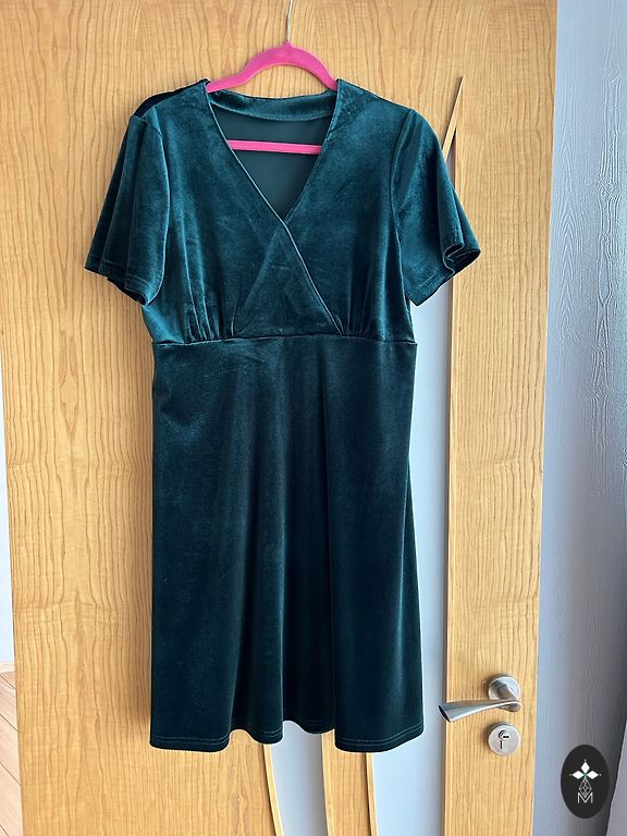 Lankstaus audinio suknelė samanų žalios spalvos, gerai krintanti, laisva. Ilgis 124 cm, krūtinė 106 cm.