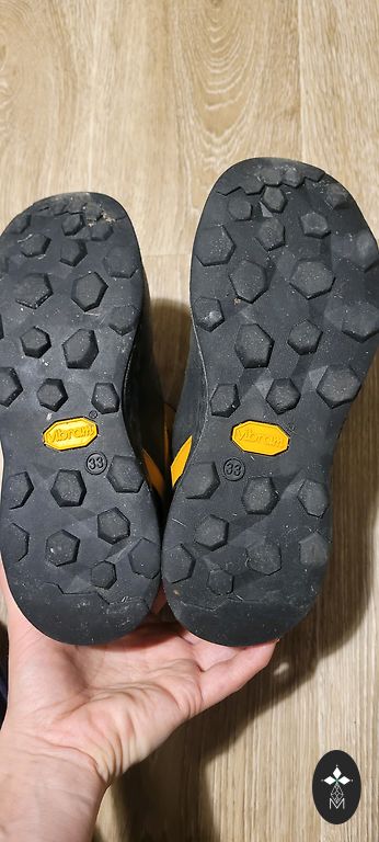 Bought new, the color on the top has come off in places, otherwise the boots are fine.