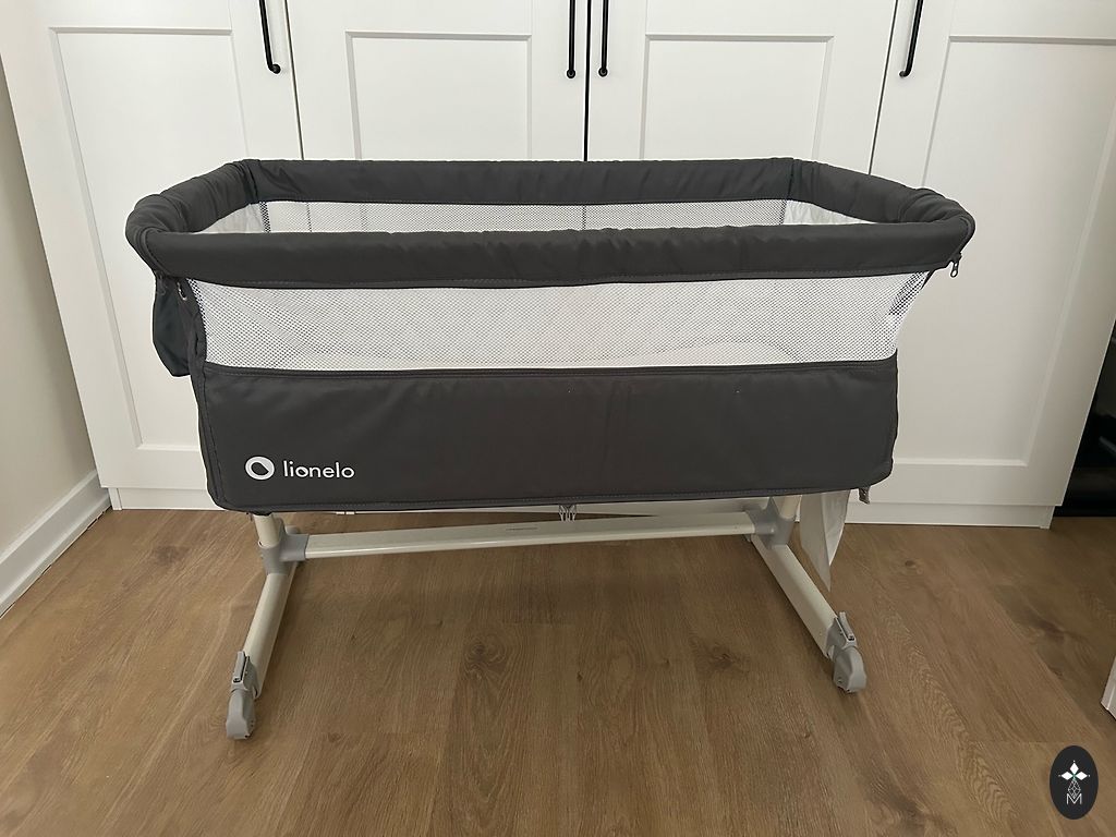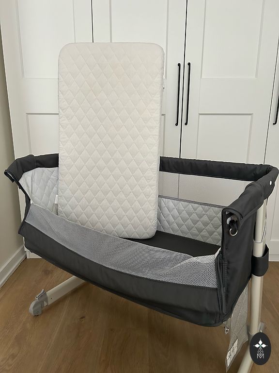 Lionelo Theo concrete crib. Unused, just assembled. Upon unpacking, there was already a small fabric defect - visible in the photo. I will include a new sheet. The baby has never slept in it. Comes with a mosquito net. Adjustable height, incline. For more detailed information: