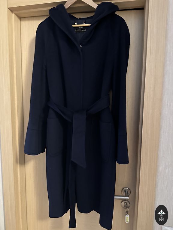 Очень теплое темно-синее зимнее пальто.