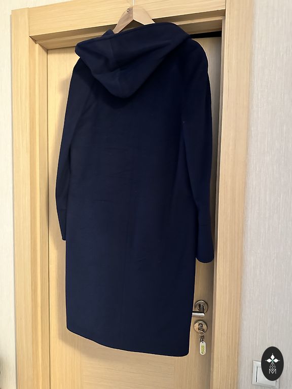 Очень тёплое тёмно-синее зимнее пальто.