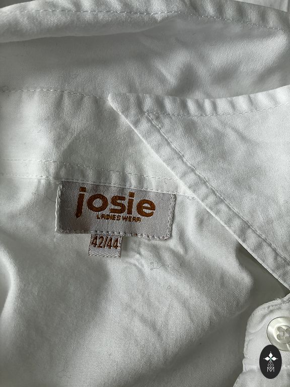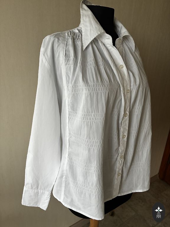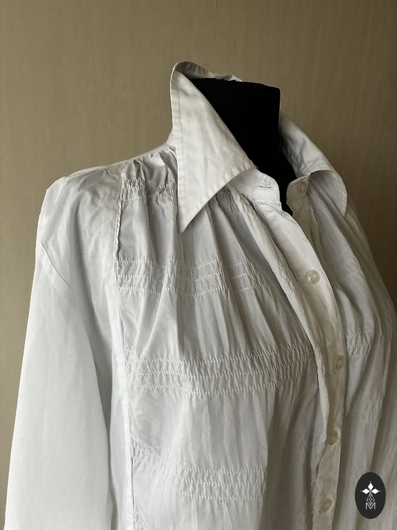 A white, extended blouse worn a few times. Shape - small trapeze, fold at the back. It has pockets 😍