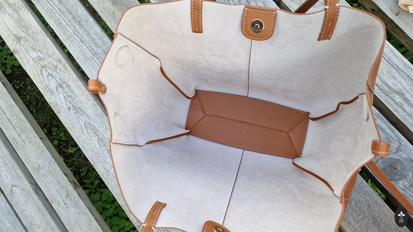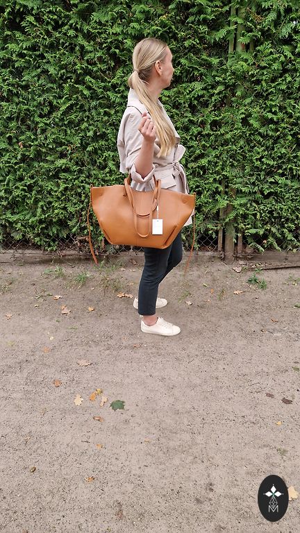 šSoma veidota modernÄ oversize āboxyā siluetÄ un aprÄ«kota ar regulÄjamu plecu siksnu.