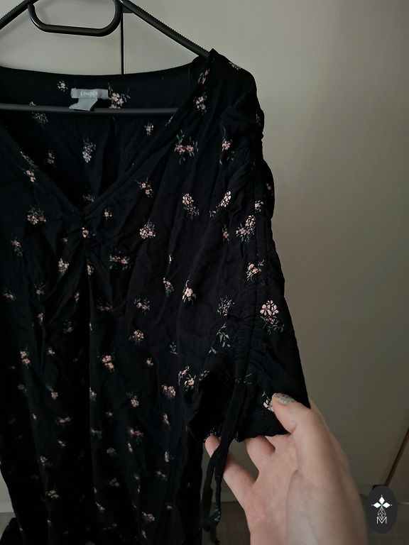 Beautiful black dress with buttons and a tie bow. Suitable for both everyday wear and special occasions. Pleasant viscose fabric. In perfect condition. Length 118cm. Size M. Black