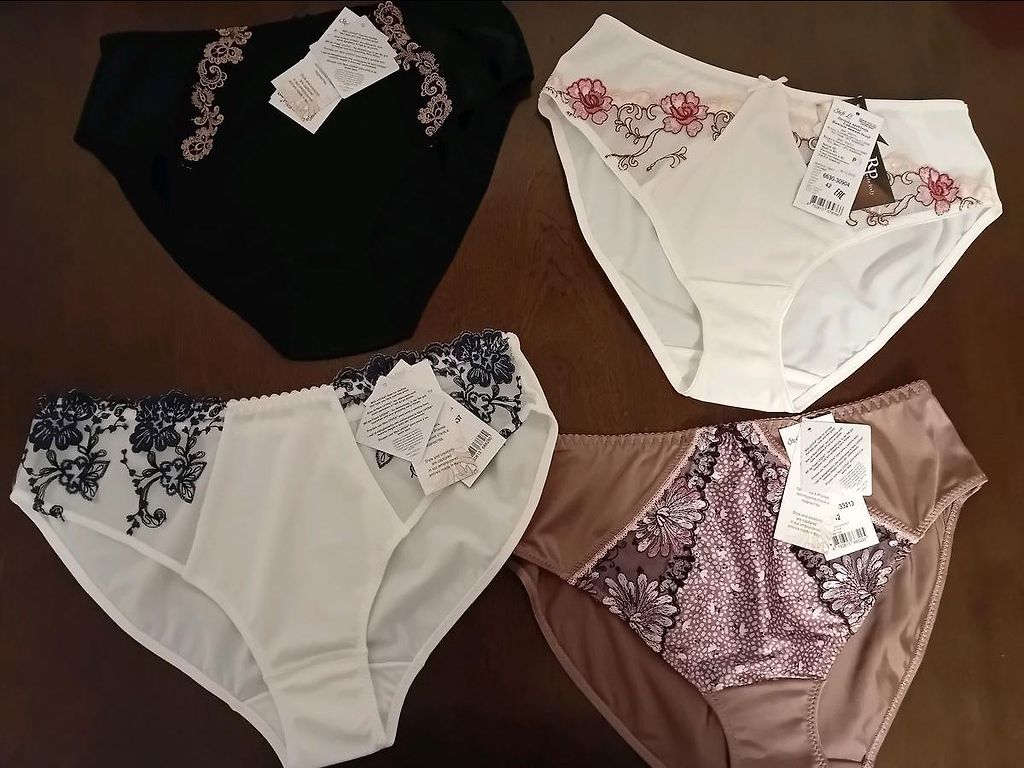 Bra 75E half padded €12, panties size 42 with high waist €6