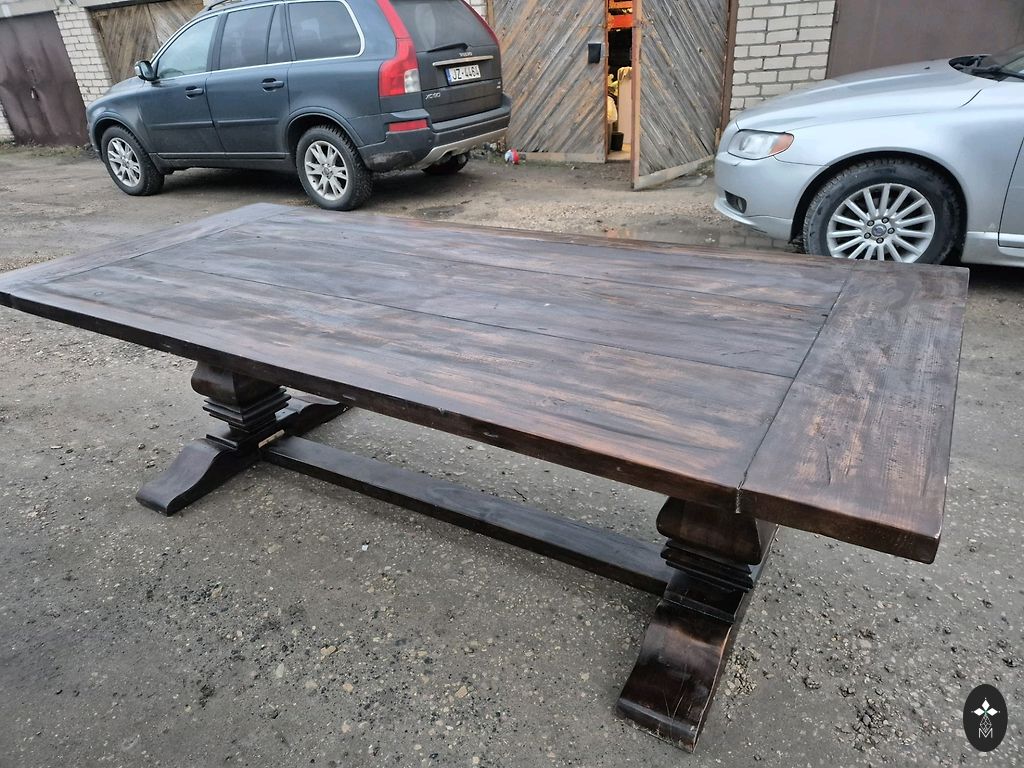 Lietots,stabils pusdienu galds.Izmēri 120 cm garumā,80cm platumā,augstums 75cm.Ir vizuāli apskrambāts,bet tehniski viss kārtībā.