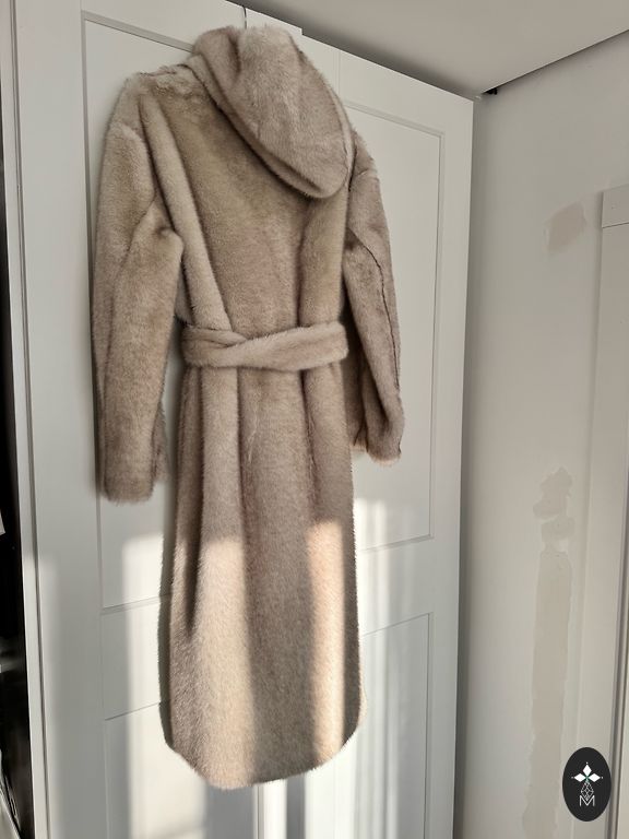 Jauns, silts mākslīgās kažokādas mētelis
