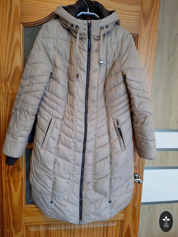 Vīriešu ziemas jaka ar rāvējslēdzēju un spiedpogam.Rakstīts ka XL izmērs, bet drīzāk L izmērs.Daudz kabatas. Ar kapuci.Bieza un silta.Jaka ur lieliskā stāvoklī, vienīgais trūkums, kas ir redzāms 1aja fotoattelā- nav vienas spiedpogas.Jakas garums no pleca 75 cm, krūšu apkārtmērs 57cm x 2. Piedurknes garums, mērot no pleca 67 cm, mērot no paduses 52 cm. Plecu platums 45 cm.