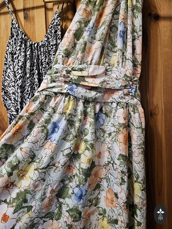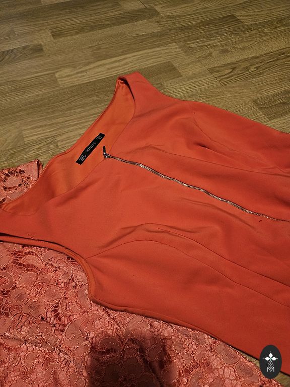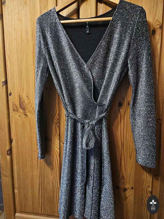 M suuruses õhtukleit. Tumesinine värv. On lukk ja vöökohal kumm. Langev, elegantne.