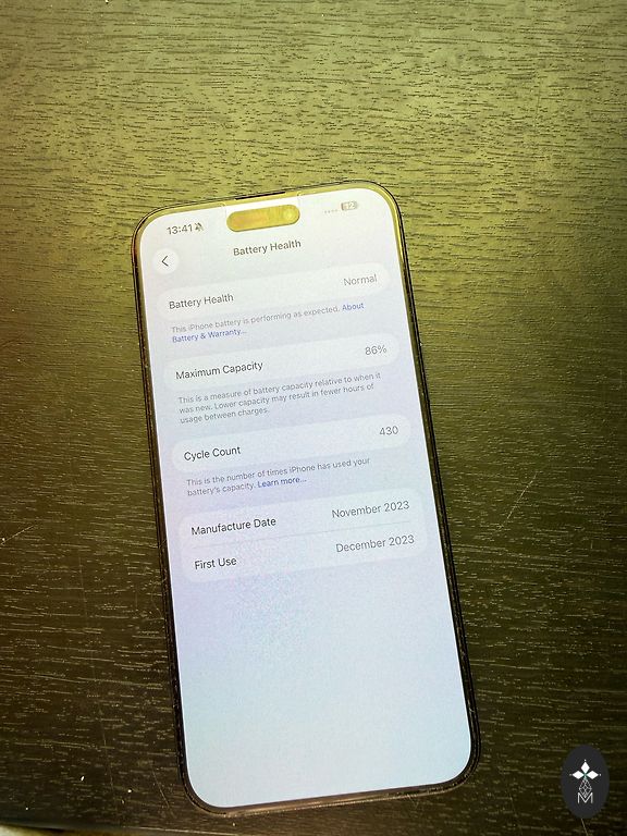 Baterijos būklė: 86% (Normalus)