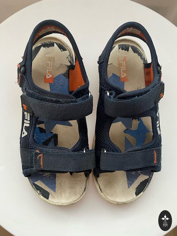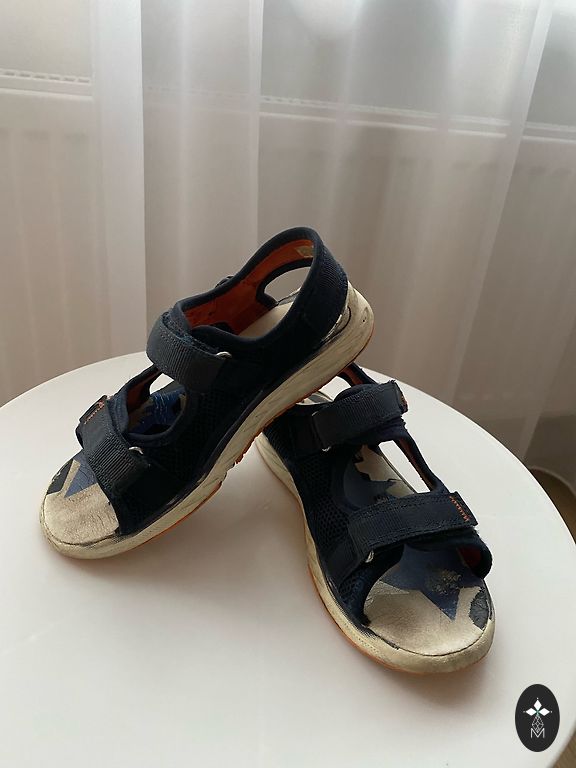 Sandals in excellent condition, only the size has worn off (17cm insole). The sneakers have slightly damaged rubber at the toe, but technically everything is okay - they can still be used for running (28ixm, 18cm insole), the velcro sticks well.