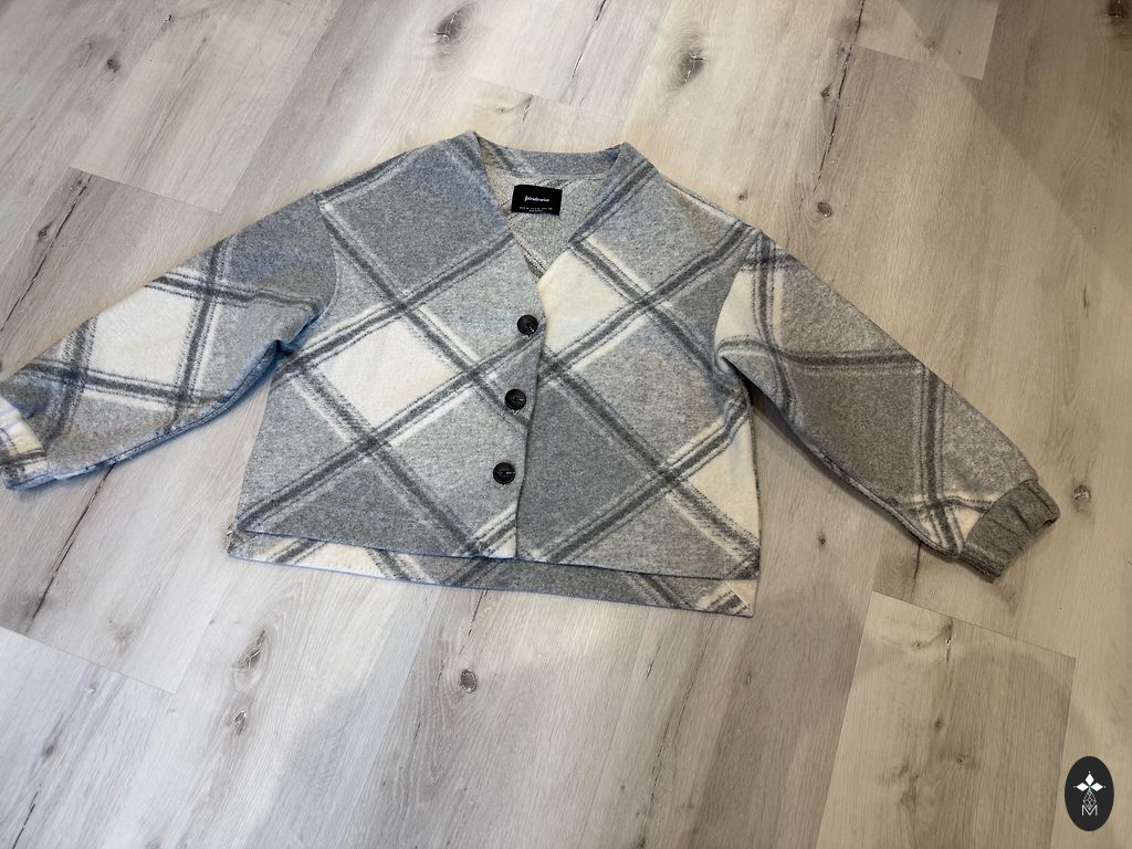 Mīksta,ērta garā jaka bez aizdares,sānos ir kabatas.