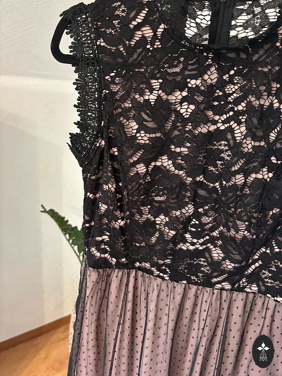Alyvinės spalvos suknelė su gražiu dekoltė. Rankovės ilgos. Suknelė turi romantiškus raukinius. Midi ilgis. Dydis 46 arba UK 18. Dėvėta vieną kartą.