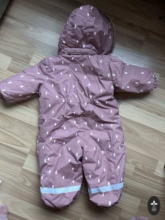 Ветрозащитный, водонепроницаемый, дышащий зимний комбинезон, купленный здесь, как новый, только примеренный, указан размер 9-12 месяцев, но может подойти раньше, для более стройного, изящного ребенка. Качественный, капюшон на молнии, интересного цвета, с закрывающимися ручками и ножками, теплый, но не слишком толстый, но, к сожалению, нам узковат.