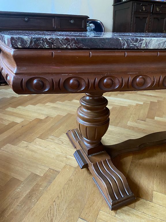 Koka galds, ir defekti, redzami pēdējā bildē