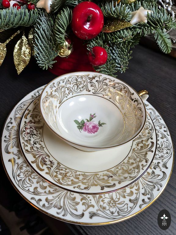 Ļoti skaists trio, oriģināla forma, rozes, zelts. Bez defektiem