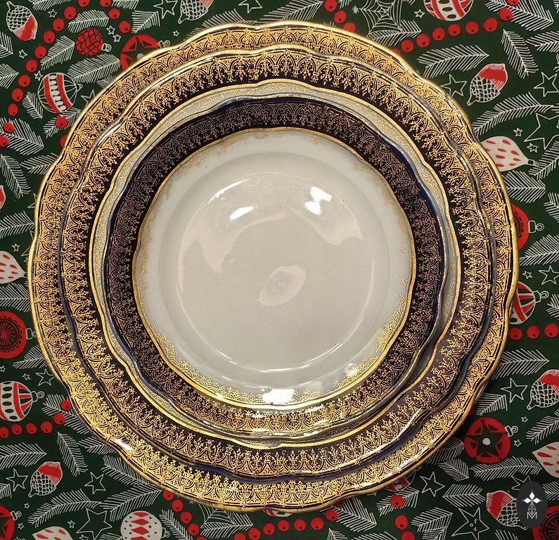 🌺Apvalus porceliano indas su dviem rankenomis. Coalport, Anglija, XX a. antroji pusė. Auksas puikios būklės.