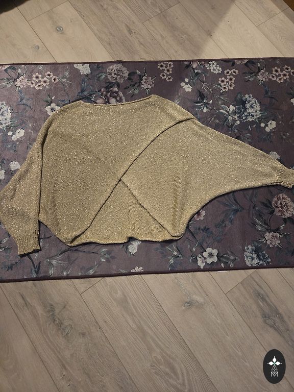 Обхват груди 128 см, обхват бедер 128 см. Длина рукава от воротника 73 см. Длина по средней линии спины 75 см. Длина передней части 63 см.