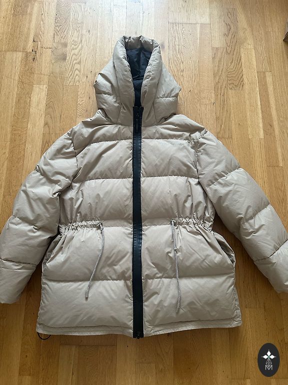 Labai būklės. Lengvas, šiltas. Ilgis 105 cm. Nuimamas gaubtas. Kišenės su paslėptais užtrauktukais. Šoninės siūlės atidaromos, kad būtų didesnė judėjimo laisvė.