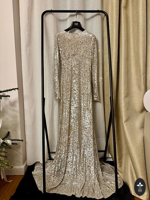Mermaid dress with sequins. Size S. Worn once. Bust 39cm, narrowest waist 33cm, dress length at the back 144cm. Zipper at the back.