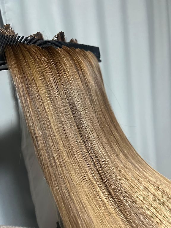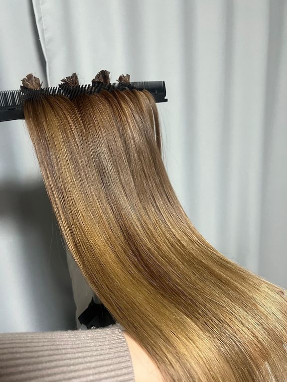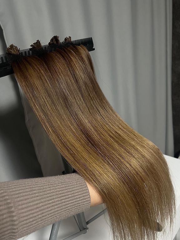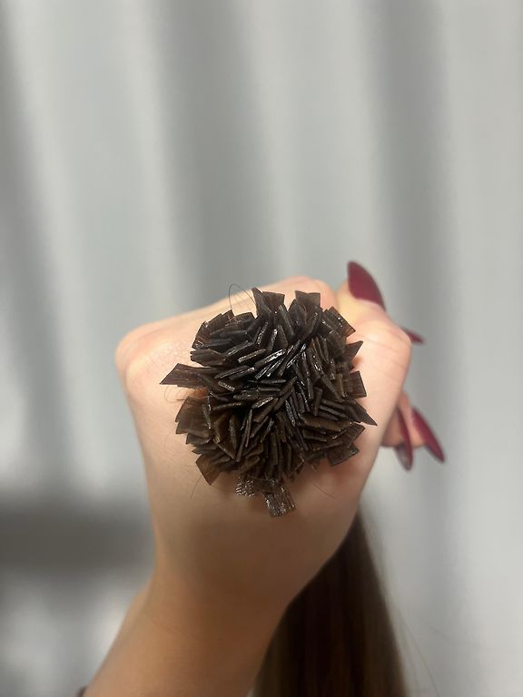 Rudi plaukai, 45-47 cm, 100 kapsulių, tačiau skirtingo storio sruogos. Prieš naudojimą reikia pakeisti kapsules.