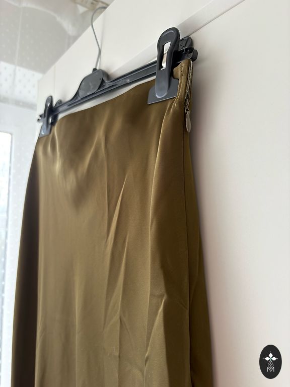 Dirbtinės odos sijonai su nedideliu skeltuku gale. Užsegimas: saga ir užtrauktukas. Ilgis: 93 cm nuo juosmens (aukštas juosmuo).