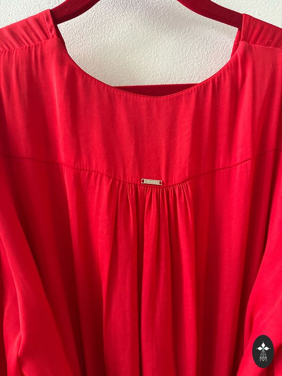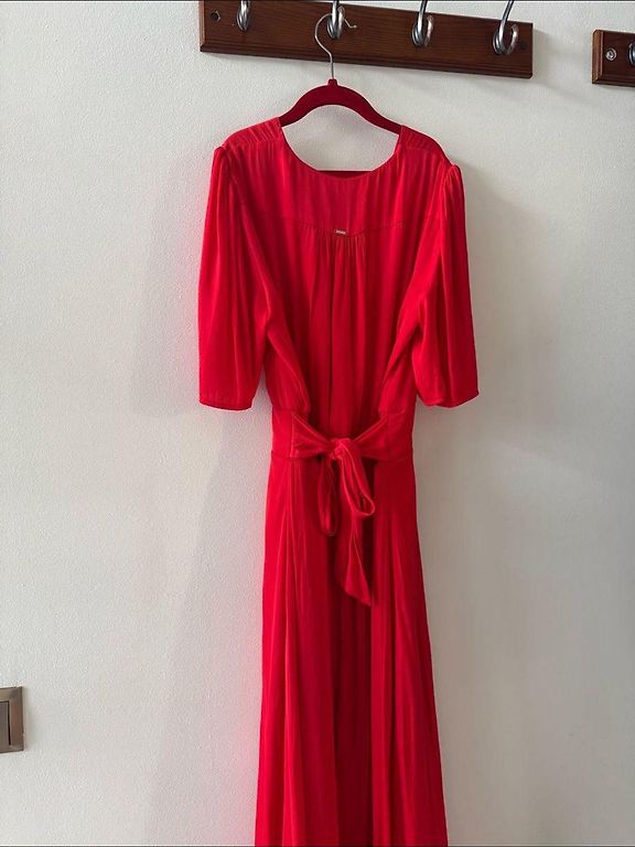 TRU:DE dress indicated as size XS, will also fit S. It has pockets, a ruffle at the back slightly extended.